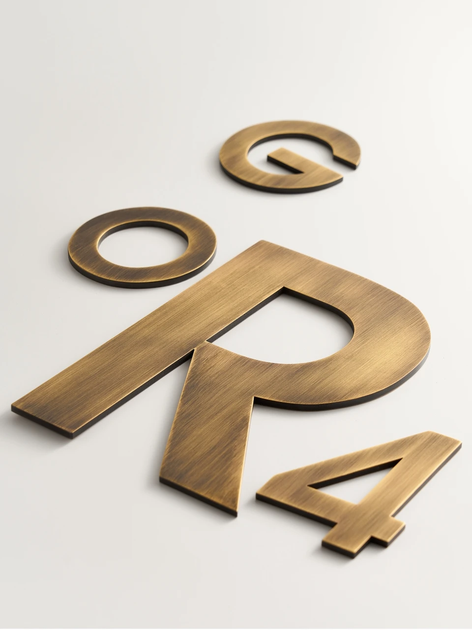Aged Brass House Number and Letter Sign – Premium 5mm Brass