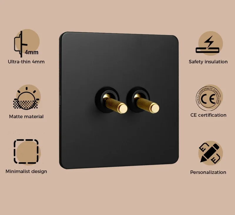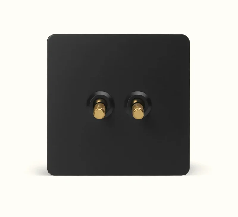 Our Black Panel Knurled Gold Toggle Switch is the perfect combination of luxurious design, durability, and modern functionality, making it an excellent choice for contemporary and high-end interiors. Crafted from premium stainless steel, its sleek black finish provides a bold, sophisticated touch while offering superior resistance to wear, fingerprints, and tarnishing. The knurled gold toggle lever adds a refined contrast, delivering both a premium aesthetic and a smooth, tactile feel for effortless operation.