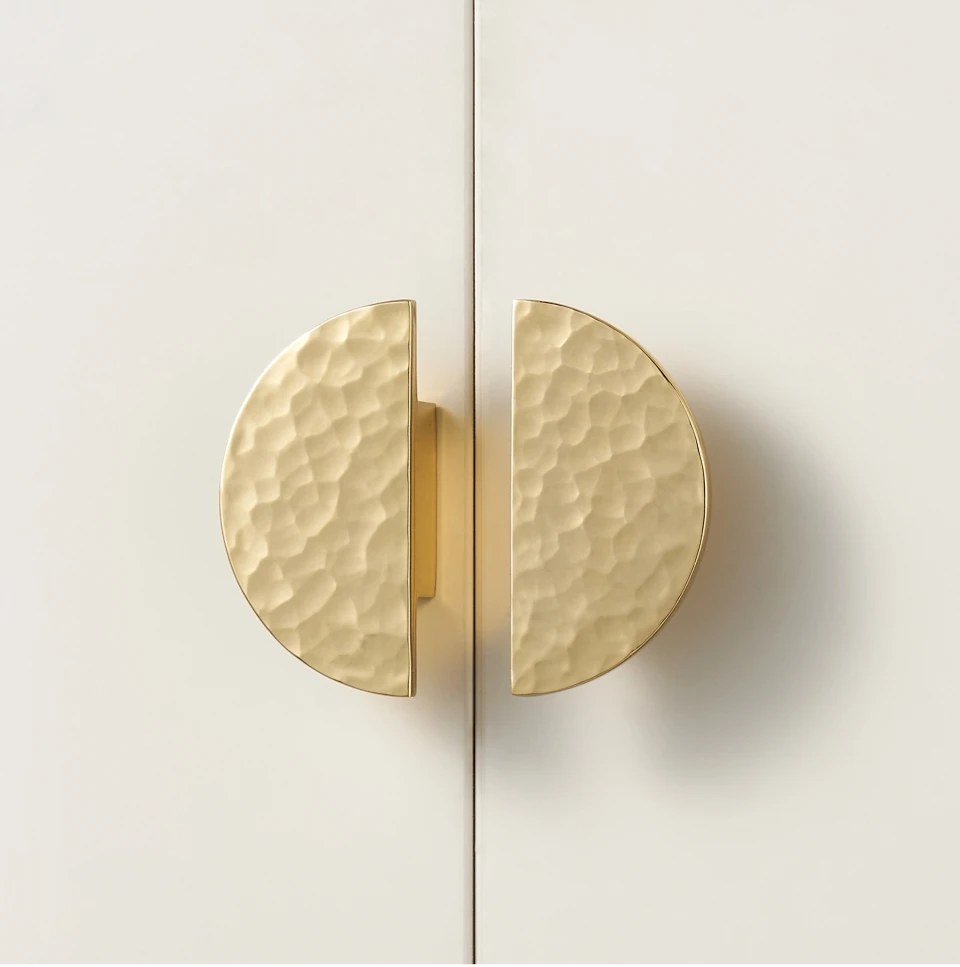 Enhance your cabinets and furniture with our Hammered Brass Cabinet Pulls and Knobs, designed to add luxury and sophistication to any space. The hand-hammered texture creates a unique, artisanal look that pairs beautifully with both modern and traditional interiors. The rich gold-tone finish brings a timeless elegance, making these pulls and knobs the perfect upgrade for kitchens, bathrooms, and furniture pieces.
