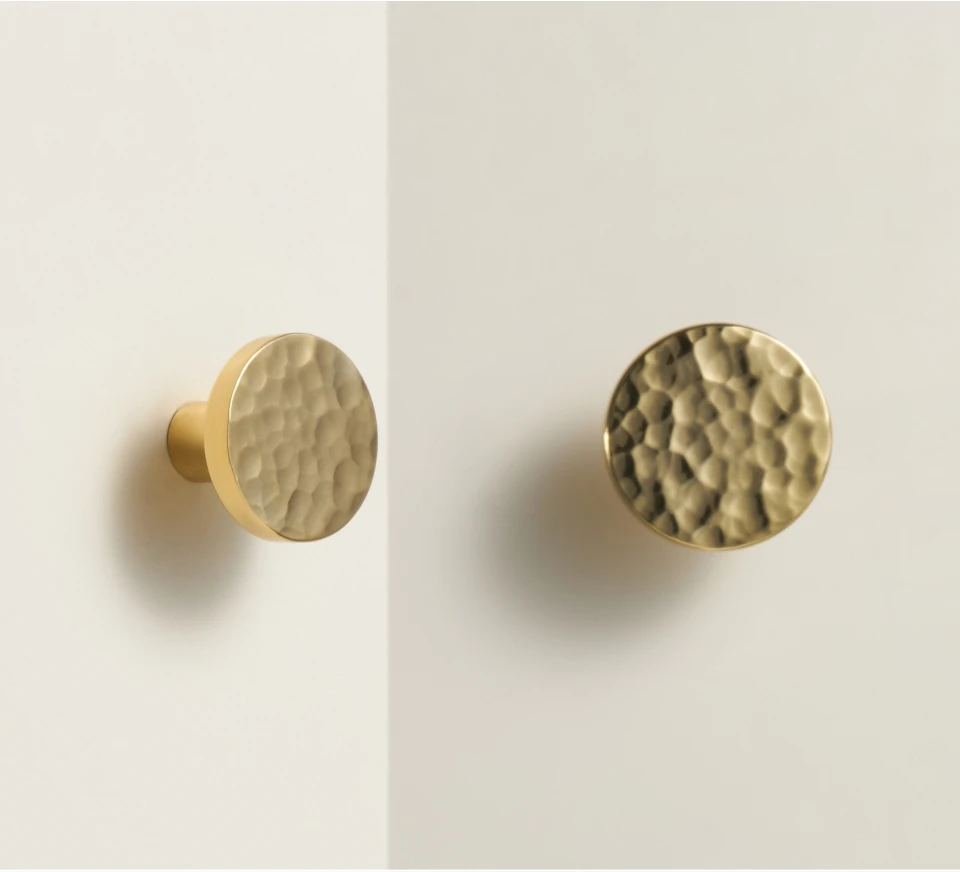 As part of our cabinet hardware collection, these Hammered Brass Cabinet Pulls and Knobs can be paired with other brass fixtures to create a coordinated, sophisticated space. Whether you’re updating a single piece of furniture or completing a full renovation, these hardware pieces provide both durability and timeless beauty.