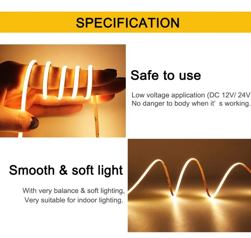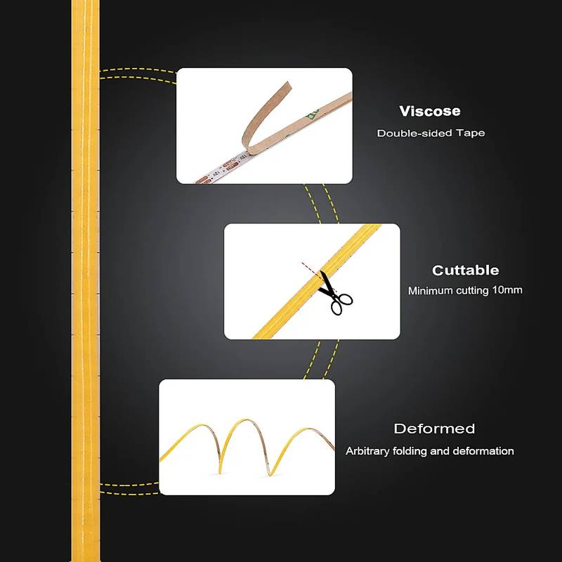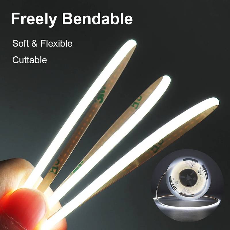 Upgrade your lighting with the Ultra Thin FOB COB LED Strip Light 3mm. Its sleek design, superior brightness, and energy efficiency make it the perfect solution for any creative lighting setup.