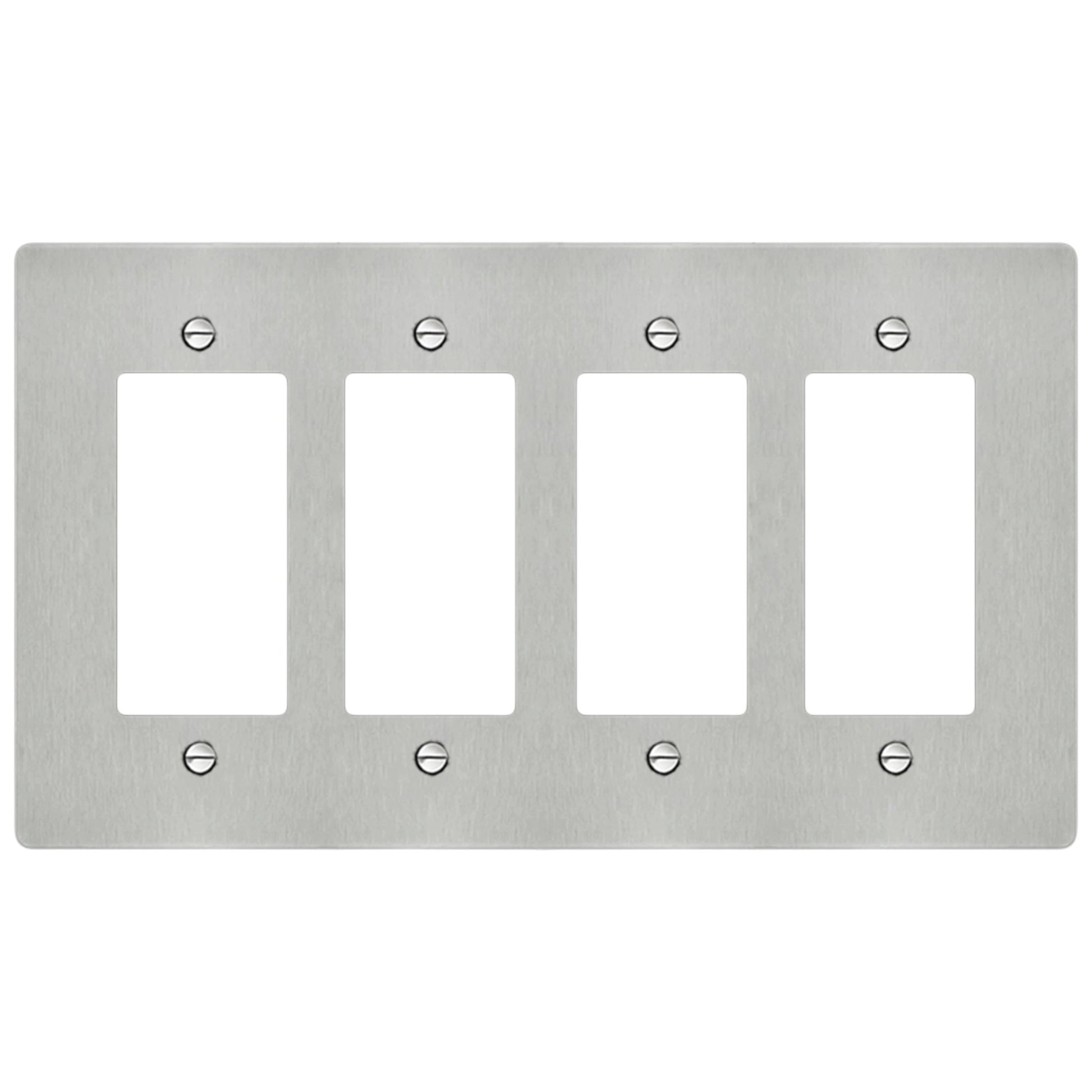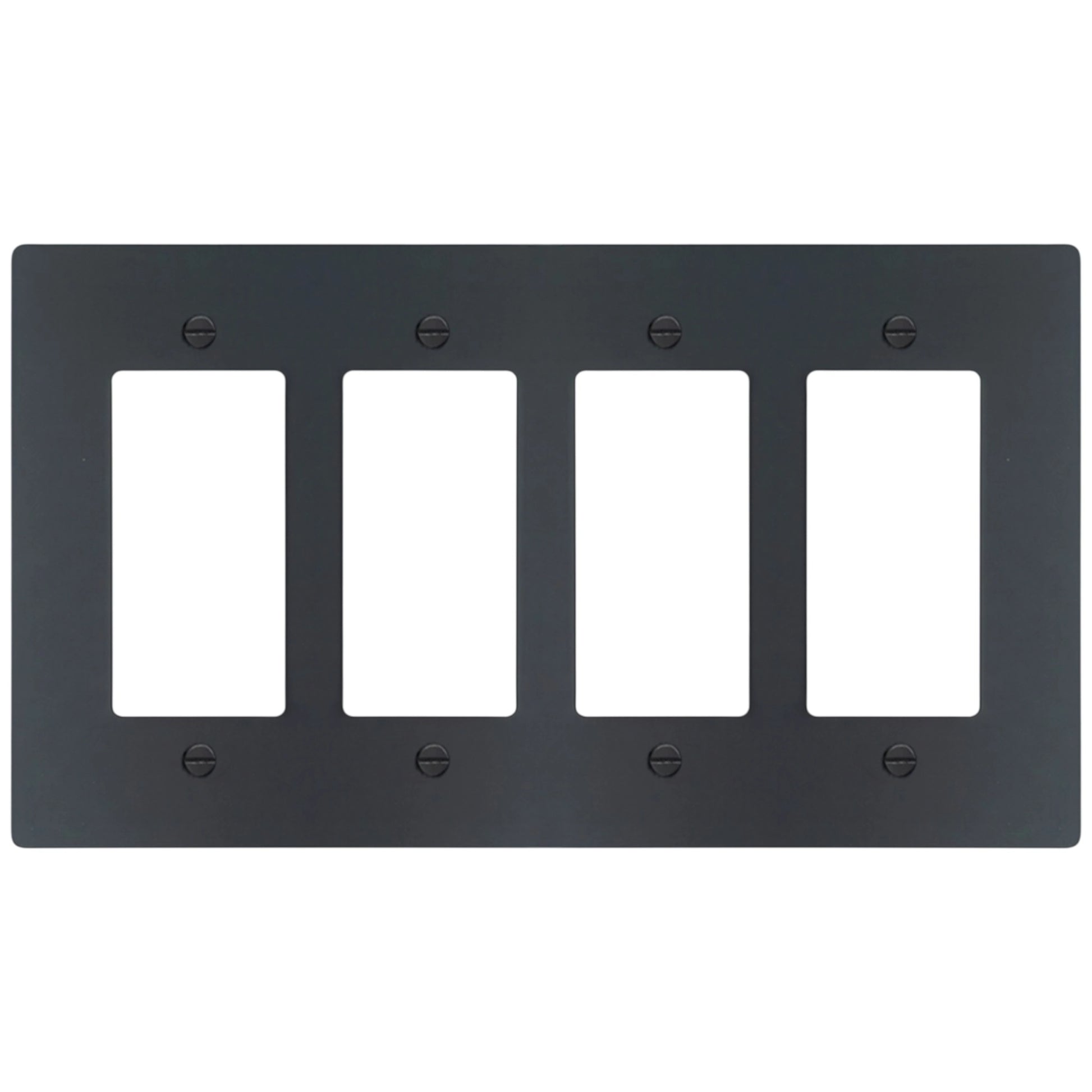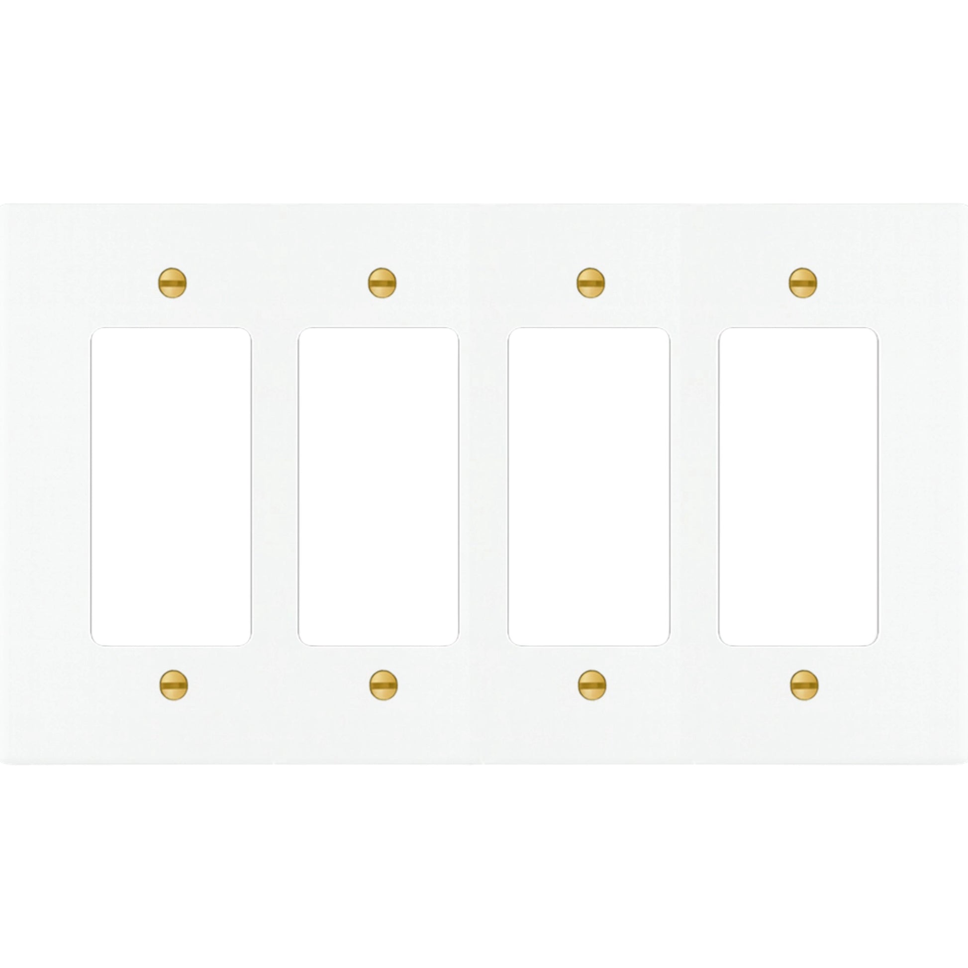 This 4-gang solid brass decorator-style wall plate fits standard decorator-format devices, including rocker switches, GFCI outlets, USB outlets, dimmers, and most smart switches. It’s cut from thick 0.080″ brass (not plated), then finished by hand so it looks clean and architectural once it’s on the wall. Matching screws are included.