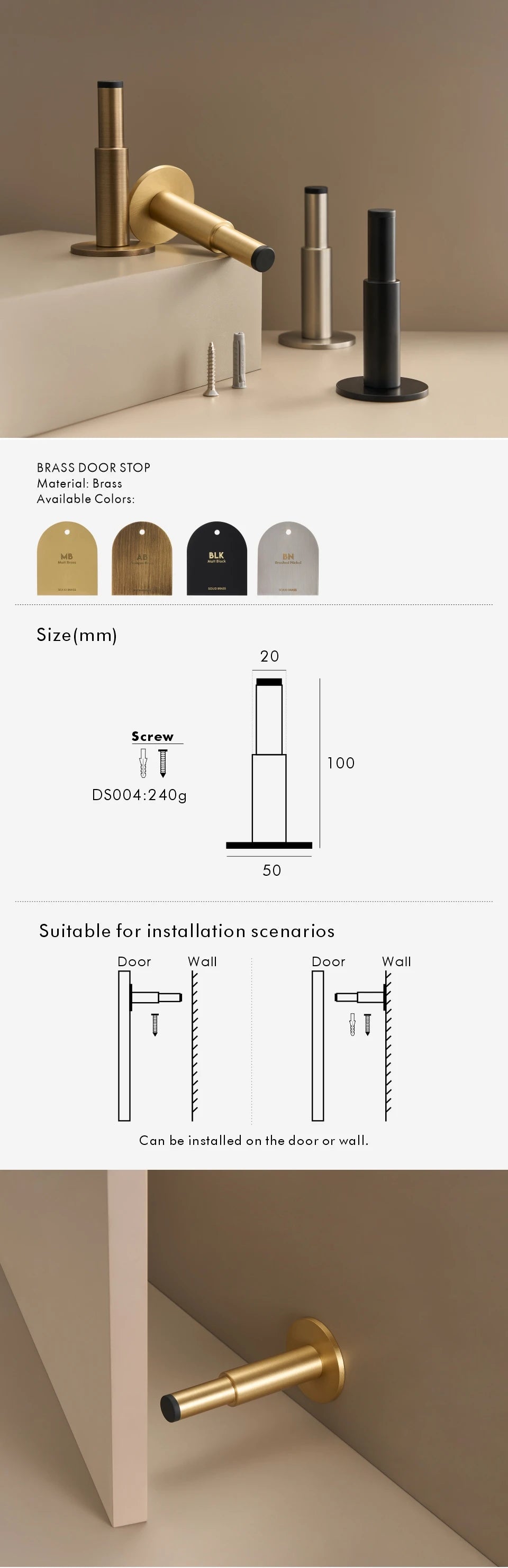 Available in Antique Brass, Matte Black, and Brushed Nickel, this stopper blends seamlessly with any décor — from classic to contemporary. Perfect for bathrooms, bedrooms, and entryways, it ensures your doors stay secure without hitting walls or furniture.