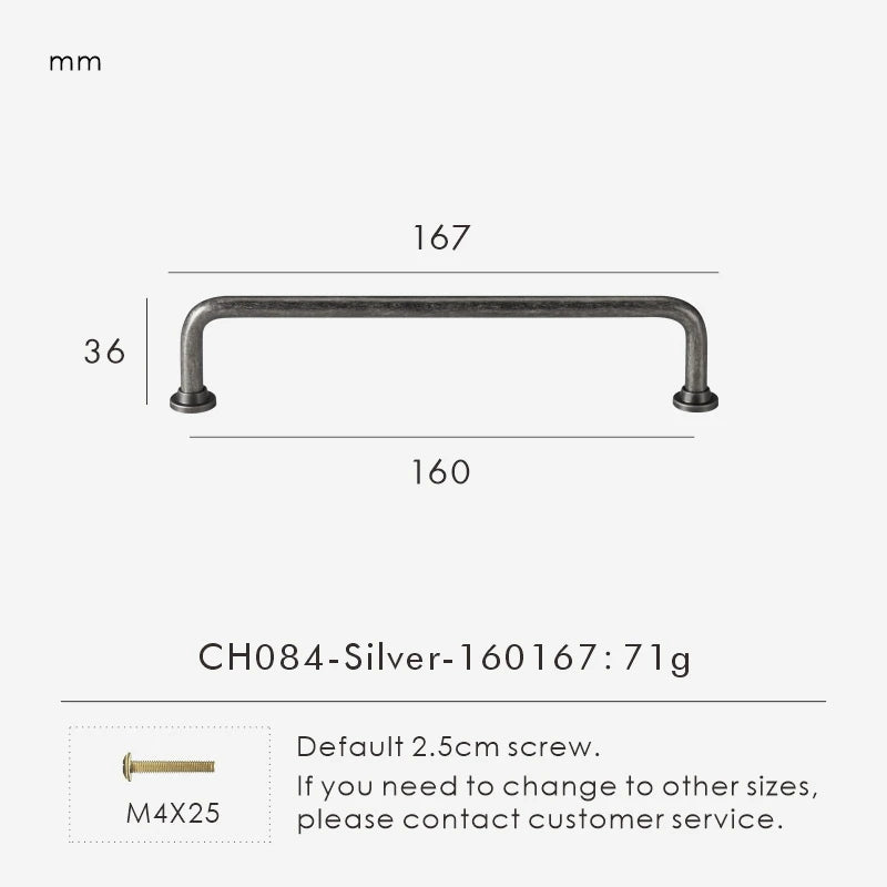 Bring classic European charm to your furniture with this Antique Silver Brass Handle, featuring a round arched designthat blends perfectly with retro and traditional interiors. Crafted from solid brass with an aged silver finish, it delivers timeless style and lasting durability for kitchen cabinets, wardrobes, and cloakroom doors.