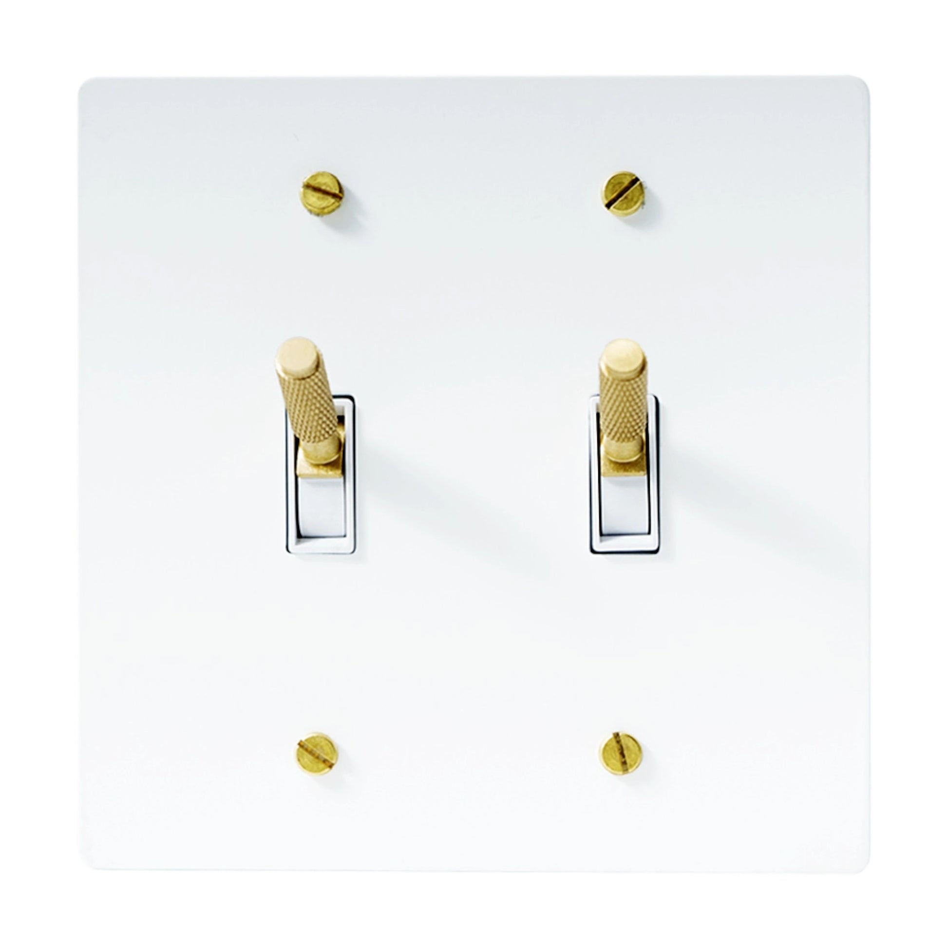 This solid brass 2-gang knurled toggle switch controls two independent lighting circuits and supports single-pole or 3-way wiring. The toggles move smoothly, with a soft, satisfying click that feels refined without being stiff or harsh. It fits just as well in high-end luxury homes as it does in everyday residences, offices, studios, and other commercial spaces, offering a clean, timeless look with the weight and feel of real brass once installed.